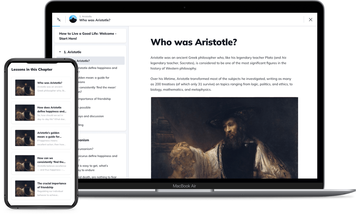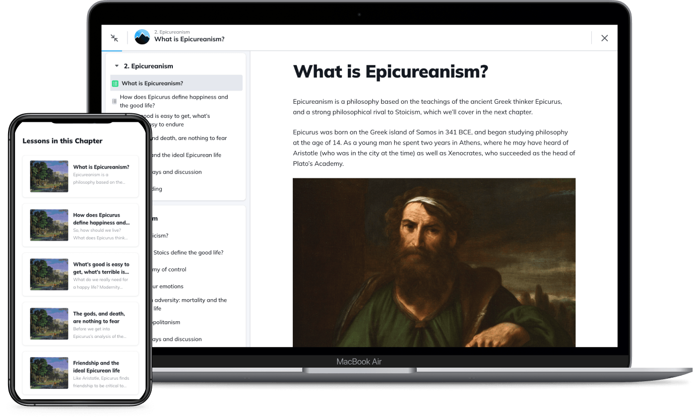 Course materials are hosted on our online learning and community platform, Philosophy Break Academy. They are optimized for easy reading on any device — be it desktop, laptop, tablet, or mobile — and are even printable, so you can consume them however you like.